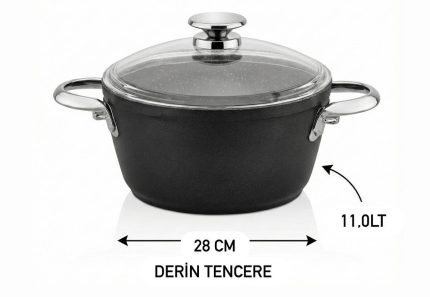 DORA 28 Cm Granit Derin Tencere Sade 11 Lt.