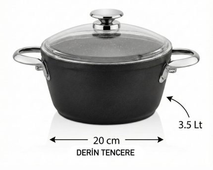 DORA 20 Cm Granit Derin Tencere Sade 3,5 Lt.