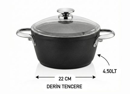 DORA 22 Cm Granit Derin Tencere Sade 4,5 Lt.