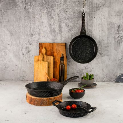 ARYA 3′ Lü Granit Tava ve Sahan Seti Siyah