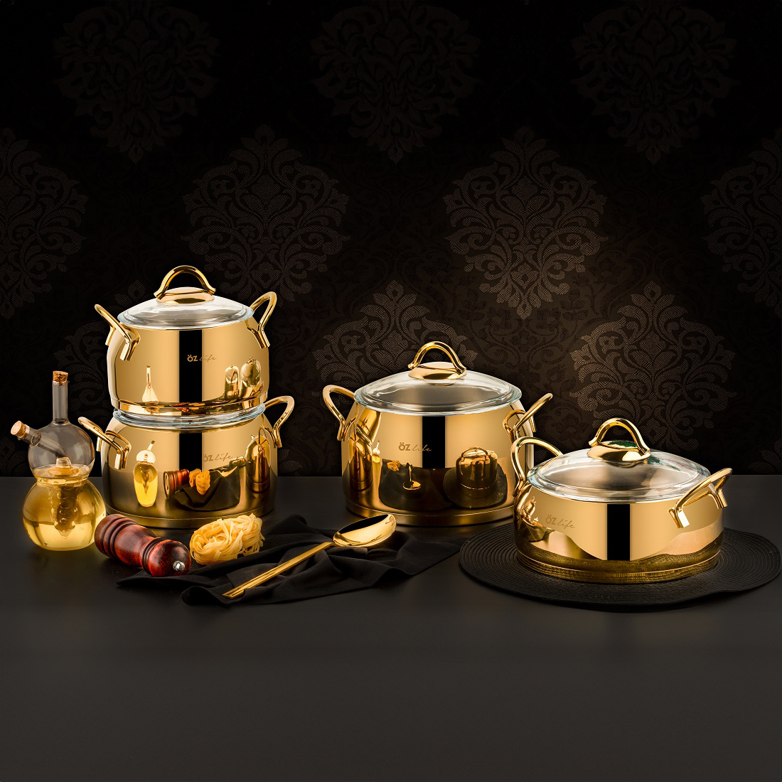 HÜMA 8 Parça Tencere Seti Titanyum Gold